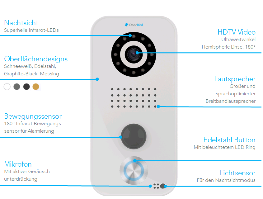 Die in diesem Konzept eingesetzte und empfohlene "DOOBIRD Tür-Station" benötigt nur die 2 Klingeldrähte und aktives WLAN. Wenn nun die Klingel gedrückt wird, erhalten Sie sofort Benachrichtigungen (Push-Nachrichten) mit Ton auf Ihrem Smartphone oder Tablet. Sie können Ihren Besucher in Echtzeit sehen UND mit Ihm sprechen UND sogar die Haustür öffnen (wenn die Haustür elektrisch geöffnet werden kann). Eine smarte Lösung – Made in Germany.