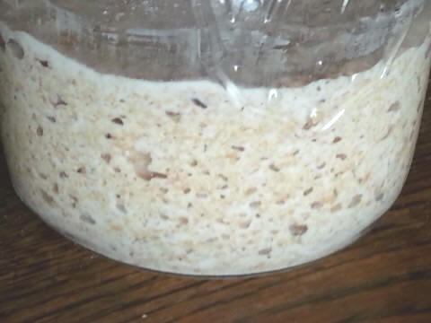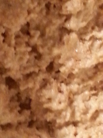 ![]() So sieht ein guter Sauerteig-Ansatz aus. Viele kleine Bläschen künden von einer gesunden Aktivität der Sauertaug-Hefen. |