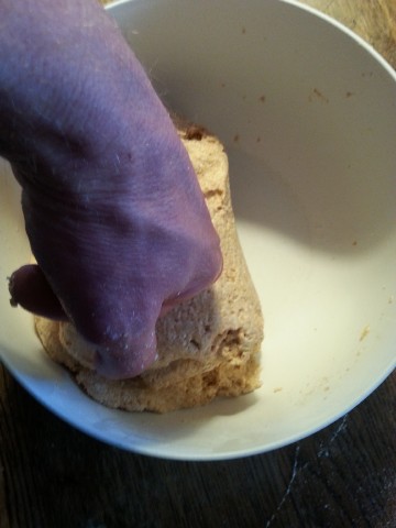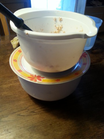 Doch nun zurück zu unserem Teig. Nach dem "Vermantschen" ... |