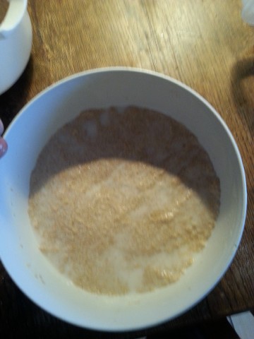 ... und auch unser "leicht gewässertes" Mehl ist schön gequollen. | |