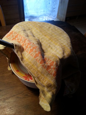 ![]() Dann nehmen wir unseren Teig aus dem Kühlschrank (bzw. vom warmen Platz) ... |