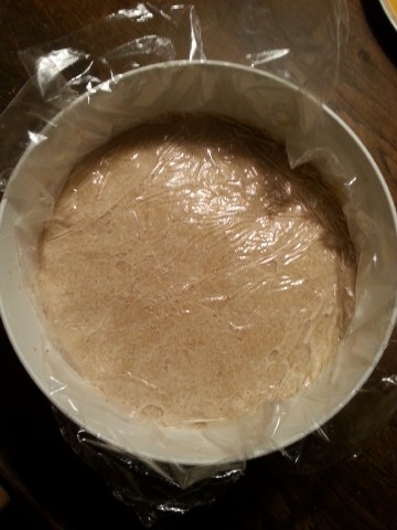 Dies ist nun unser Vorteig. Die Schüssel mit dem Vorteig mit einem Küchenhandtuch abdecken und an einem warmen Ort zum Gehen stellen, bis das Volumen um mindestens 50 % mehr geworden ist. |