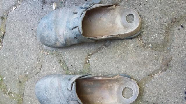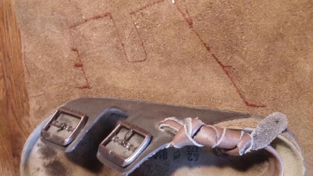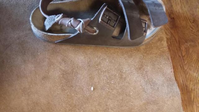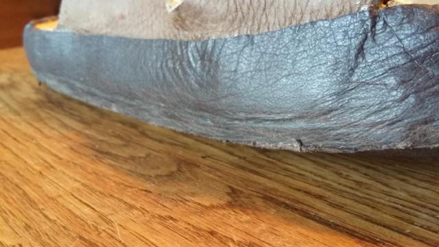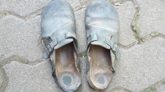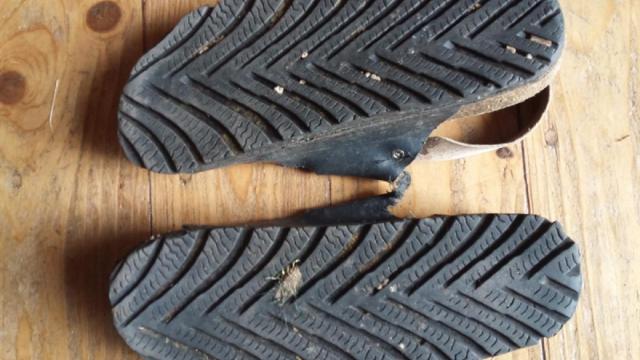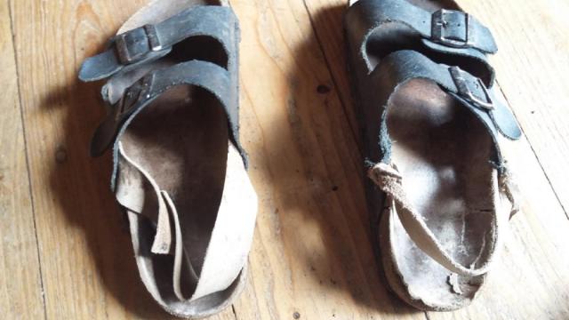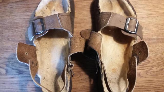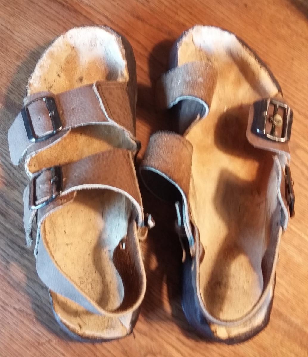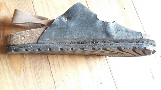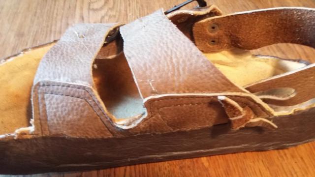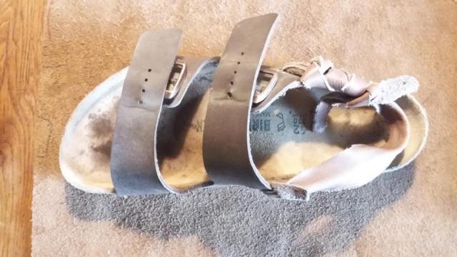 "Überall-Latschen" (Sandalen) fertig - wieder an der Ferse, allerdings war auch schon das Korkfußbett durch.