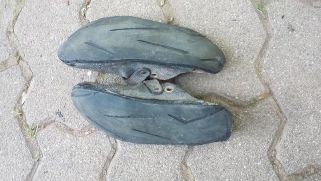 Jedenfalls liegt die Laufleistung bei solchen Sohlen bei gut 10.000 km ... und wenn die mal durch sind, dann sind die ruckzuck repariert bzw. ganz/teilweise neu aufgeklebt.