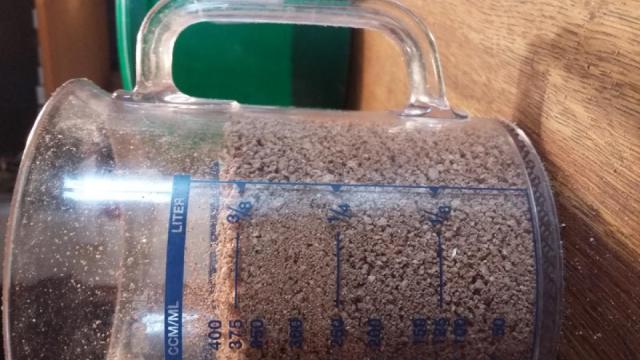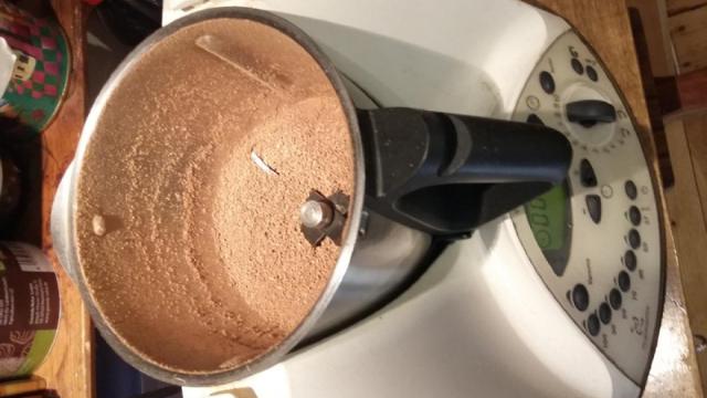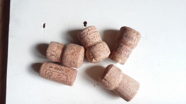 4. Korkmehl bzw. -brösel für das Fußbett zubereiten. Dazu werden 10-20 Korken in einen Küchenmixer gegeben und klein gemacht, bis kein Kork-Brösel größer als 2-3 mm ist.