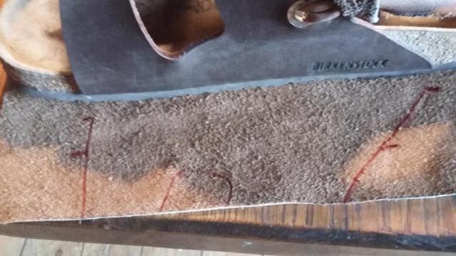 Es war mal wieder so weit: Bei meinen offenen "Überall-Latschen" (Sandalen) war wieder einmal die Sohle im Fersenbereich ab- bzw. durchgelaufen, so dass von unten schon der Kork zu sehen war.