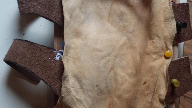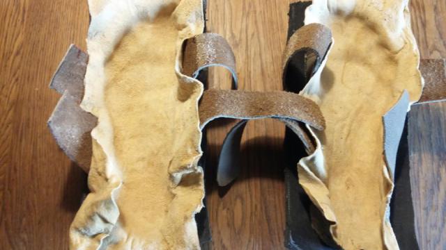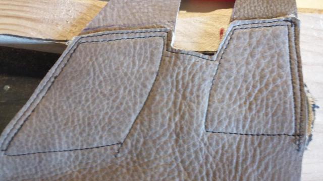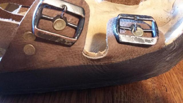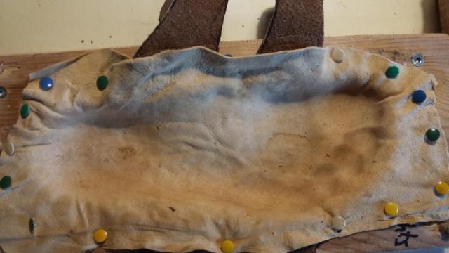 Da hier nicht so viel Leder zur Verfügung stand, wurden die Riemen angenäht.